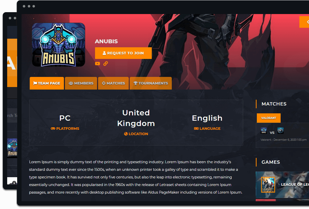 Arcane gives you the power to be able to create communities where users can create and manage teams, matches and tournaments.